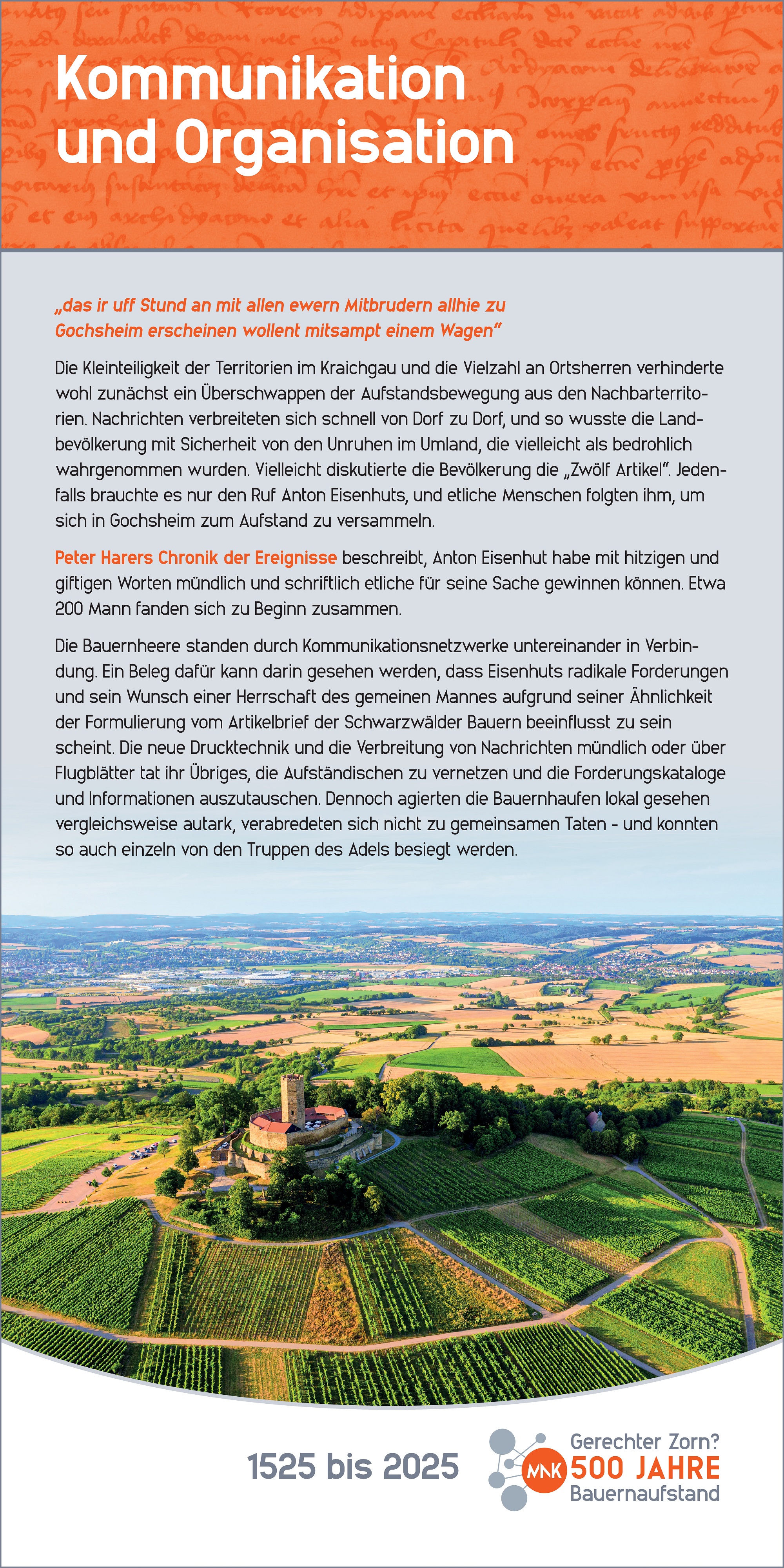 Hier finden Sie allgemeine Informationen über die Wanderausstellung "Gerechter Zorn? 500 Jahre Bauernaufstand im Kraichgau"